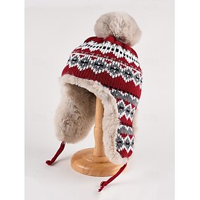 vinterstrikket trapperlue med pom-pom og fuskepelsfôr - varm lue med øreklaff for kvinner