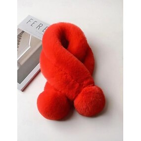 Juleskjerf i fuskekaninpels med pomponer til dame, mykt og koselig vintertilbehør til høytidsfester og gaver