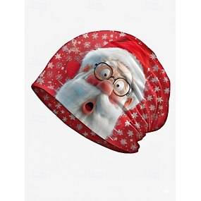 Herrelue med julemønster – kan brukes som halsmansjett, festlig rød, med julenissetrykk, myk og allsidig, egnet for høytidsfester og vinterantrekk
