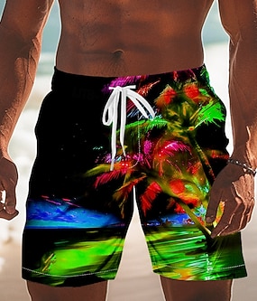 Herre Kokosnøttre Tropiske planter Badeshorts Surfeshorts Medium Midje Hawaiisk Feriereise Snorer Mesh fôr Elastisk midje Designer Klær