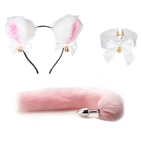 revekostyme for jenter reveører hale barnekatt ulvører fluffy furry hale carnival cos accessories