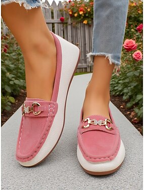 Kvinners knallrosa faux suede penny loafere - Chic slip-on flats sko uformell hverdagsbruk