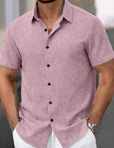 Herre Skjorte Linskjorte Uformell skjorte Skjorte med knapper Bomullsskjorte عادي Strand Feriereise Blå Svart Hvit Rosa Kortermet Aftæpning Sommer Klær