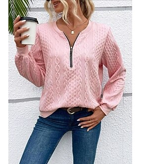 damegenser elegant moderne ensfarget arbeid med rund hals glidelås løs passform langermet svart hvit rosa grå vår høst