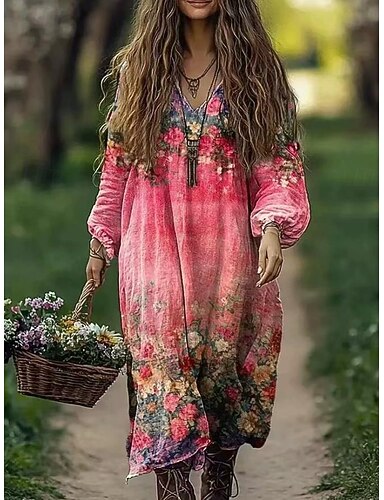kvinners boho kjole floral v-hals maxi kjole vintage kjole print kjole mote moderne sommer våren