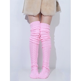 Damesokker i akrylstrikk som går over kneet – myke, varme, perfekte til jul, tilgjengelig i flere størrelser