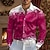 Jul Herre Blomstermønster Julekuler Skjorte Sateng skjorte Dresskjorter Langermet Fashion Casual utendørs Ferie Vår Høst Aftæpning 3D-utskrift Skjorter med knapper Rød Lilla Rosenrød