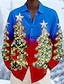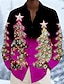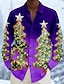Herre julenissen Juletre Skjorte Skjorte med knapper Langermet Fritid Jul Dagligdagstøy Ut på byen Høst vinter Aftæpning Trykt mønster Knapp ned Grå+Lilla Mørkerød Gul Rød Kongeblå