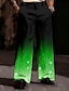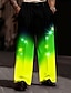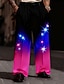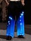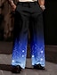 Jul Herre Gradientfarge Julelys Bukser Dressbukser Medium Midje Fashion Casual Fest Ferie Avslappet passform med flate kjoler foran og sidelommer Høst Vinter 3D-utskrift Blå Grønn Rosenrød