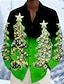 Jul Herre Juletre Glitrende glitter Gradientfarge Skjorte Skjorte med knapper Langermet Fashion Casual Ferie Vår Høst Aftæpning 3D-utskrift Front One Lomme Lin som skjorte Blå rød Svart / Grønn Svart