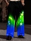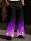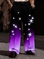 Jul Herre Stjerner Gradientfarge Julelys Bukser Dressbukser Medium Midje Fashion Casual utendørs Ferie Avslappet passform med flate kjoler foran og sidelommer Høst Vinter 3D-utskrift Blå Lilla Grønn