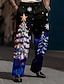 Jul Herre Juletre Julelys Bukser Dressbukser Medium Midje Fashion Casual utendørs Ferie Avslappet passform med flate kjoler foran og sidelommer Høst Vinter 3D-utskrift Svart Blå Grønn