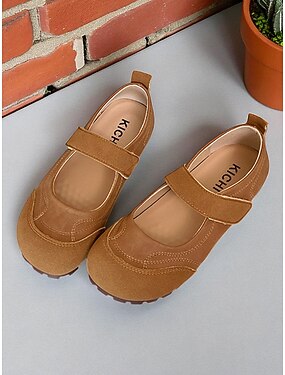 Beige damesko med vid passform og Mary Jane-stropper med borrelås – avslappede, komfortable, sklisikre barfotsko for daglig bruk, turgåing og reiser