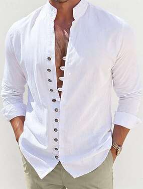Herre Skjorte Linskjorte Sommerskjorte Strand Klær Uformell skjorte Skjorte med knapper عادي Feriereise Daglig Svart Hvit Rosa Blå Langermet Båndkrage Sommer Vår & Vinter Klær
