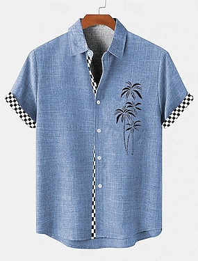 Herre Kokosnøttre Tropiske planter Linskjorte Strandskjorte Hawaii skjorte Kortermet Hawaiisk Feriereise Ferie Strand Klær Sommer Vår Aftæpning krage skjorter Blå Grønn Grå