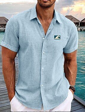 Herre Skjorte linskjorte retro skjorter Vintage skjorte Etnisk skjorte Etnisk Arbeid Avslappet Blå Grønn Kakifarget Kortermet Aftæpning Sommer Vår Klær