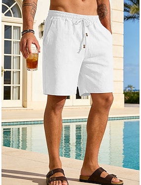 Herre Lin Shorts Sommershorts Strandshorts Snorer Lomme عادي Komfort Pustende Over Knæet Avslappet Daglig utendørs Ferie Fritid Svart Hvit Uelastisk