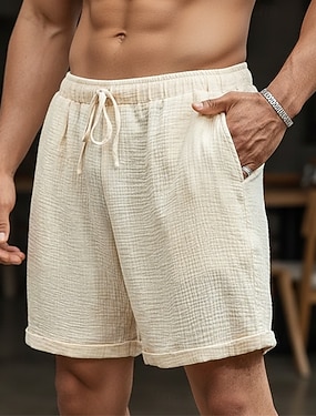 Herre Shorts Lin Shorts Strandshorts Seersucker Shorts Teksturerte shorts Snorer Elastisk midje عادي Komfort Pustende Over Knæet Daglig utendørs Strand Ferie Mote Svart Beige Mikroelastisk