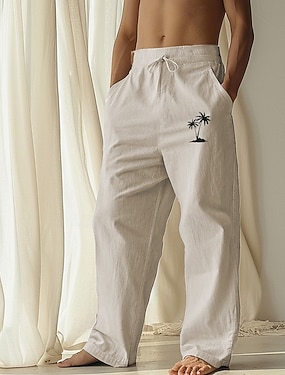 Herre Kokosnøttre Tropiske planter Bukser Uformelle bukser Posete bukser Medium Midje Hawaiisk Fritid Gateklær Feriereise Strand Klær Snorer Elastisk midje Bred Bukseben Grafisk trykk Beige
