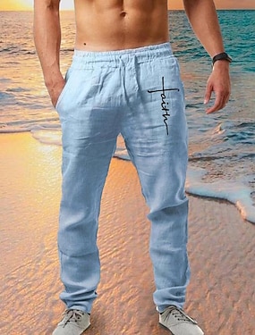 Herre Linbukser Bukser Sommerbukser Posete bukser Strandbukser Snorer Elastisk midje Rett ben عادي Komfort Pustende Full lengde Avslappet Daglig Ferie Ferie Mote Hvit Navyblå