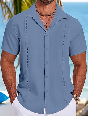 Herre Skjorte linskjorte Guayabera skjorte Sommerskjorte Strandskjorte عادي Feriereise Gate Svart Hvit Navyblå Grå Kortermet Brettelig Krage Vår sommer Klær Skjøte