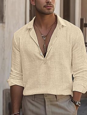Herre Skjorte linskjorte عادي Avslappet Daglig Svart Hvit Blå Kakifarget Langermet Med hette Vår sommer Klær Knapper