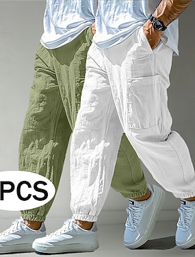 Herre Linbukser Bukser Sommerbukser Posete bukser Multi lomme Elastisk mansjett عادي Lettvekt Pustende Full lengde Avslappet Daglig Ferie Ferie Mote Hvit + Grønn Hvit + khaki Uelastisk
