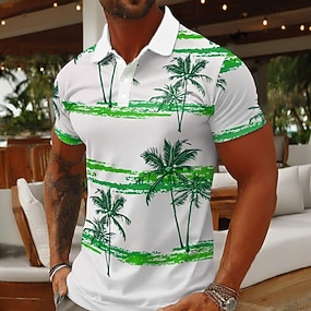 Herre Palmetre Poloskjorter Kortermet Poloskjorter Skjorter med krage Fritid treningsklær Ferieklær 3D-utskrift Knapper Pustende netting Vår sommer Blå Brun Grønn