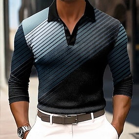 Herre Fargeblokk Geometrisk Vaffel poloskjorter Med Tekstur Langermet Poloskjorter Knaphul Fritid treningsklær Dagligdagstøy 3D-utskrift Vår Høst Vinter Navyblå Himmelblå Grønn