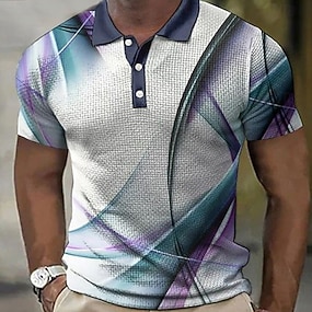 Herre Geometrisk Linje Vaffel poloskjorter Kortermet Poloskjorter Skjorter med krage Business Casual Virksomhet Skole treningsklær 3D-utskrift Knapper Sommer Blå Rød Lilla