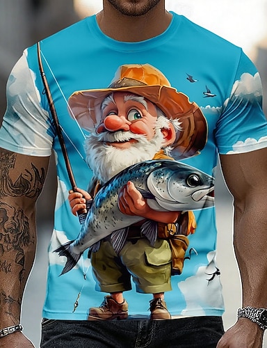 Herre Gammel mann Fiske T skjorte Kortermet T skjorte 3D-utskrift Crew-hals Skjorte overdrevet Designer Daglig Klubb Fest Blå Lyseblå Sommer Vår Alle årstider Klær S M L XL XXL XXXL