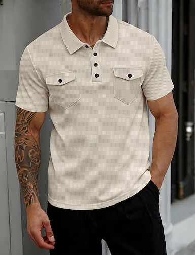 Herre Med Tekstur Vaffelstrikket poloskjorte Avslappet Virksomhet Klassisk Kortermet Mote Moderne Helfarge Fort Tørring Knapper Sommer Vår Normal Blå Svart Hvit Navyblå Grønn Med Tekstur