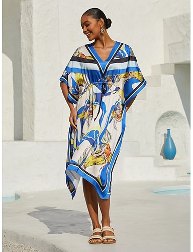 Dame Maxikjole Uformell kjole Kjole med A-linje Sommerkjole Elegant Ferie Fritid Strand Normal Blomstret Grafisk Kortermet V-hals Rosa Rød Blå Oransje Sommer Vår