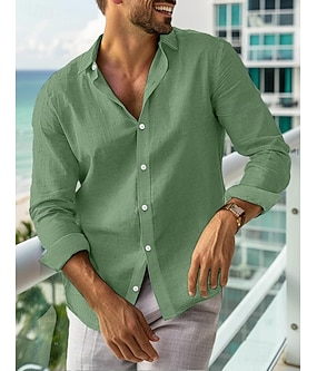 Herre Linskjorte Uformell skjorte Strandskjorte Skjorte med knapper Skjorter uten stopp عادي Strand Feriereise Svart Hvit Rosa Navyblå Langermet Knaphul Vår sommer Klær Grunnleggende