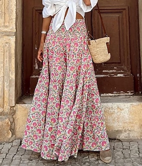 kvinners swing langt skjørt bohemia maxi skjørt print floral street ferie våren & sommermote kyst-bestemor-stil boho rosa rose
