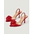 Røde stiletto-sandaler med stropper og blomsterdetalj på ankelen til dame, sexy høyhælte festsko for natteliv, åpne kjolehæler til klubb, cocktail &kveldsarrangementer