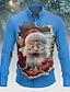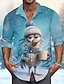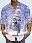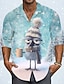jul herre julescene trykte skjorter snøfnugg uformelle mote uformelle kjole knapp opp lange ermer fest kveld hverdagsklær ferie sommer vår høst krage skjorter 3d-trykk tynn blå sateng
