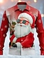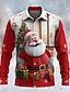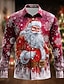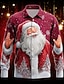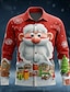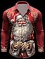 Jul Herre julenissen 3D-tegneseriefigur Menneskelig ansikt Skjorte Skjorte med knapper Langermet Morsom utendørs Ferie Vår Høst Aftæpning 3D-utskrift krage skjorter Rød 1 Svart Rød