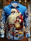 Jul Herre julenissen 3D-tegneseriefigur Smilefjes Skjorte Skjorte med knapper Langermet Morsom utendørs Ferie Vår Høst Aftæpning 3D-utskrift krage skjorter Blå 1# Blå