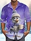 Jul Herre Juletre Skjorte Dresskjorter Skjorte med knapper Langermet Fritid Fashion Casual Feriereise Festkveldsklær Hverdag Sommer Vår Høst Skjorter med krage 3D-utskrift Lyseblå Svart Blå Lilla