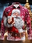 Jul Herre julenissen 3D-tegneseriefigur morsom jul Skjorte Skjorte med knapper Langermet Morsom Julegaver Ferie Vår Høst Aftæpning 3D-utskrift krage skjorter Lys Rosa Rosa