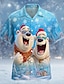 Jul Herre Snøfnugg Isbjørn morsom jul Skjorte Kubansk skjorte Kortermet Morsom Ferie Gateklær Vår Høst Kinesisk Krave 3D-utskrift Skjorter med knapper Blå