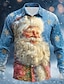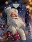 Herre Skjorte Bokstaver julenissen Grafiske trykk Aftæpning Svart Blå 3D-utskrift Jul Gate Kortermet Knapp ned Trykt mønster Klær Mote Designer Fritid Pustende