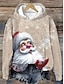 Dame Pullover hettegenser-genser Grafisk julenissen Snømann Fritid Langermet Med hette Vanlige topper Festkveldsklær Gate Hverdag Rosa Rød Kakifarget Vår Høst Vinter