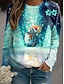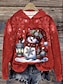 Dame Genser med genser Grafisk Katt julenissen Mote Fritid Langermet Crew-hals Vanlige topper Gate Hverdag Avslappet Trykt mønster Hvit Rød Blå Grønn Mørkeblå Høst Vinter