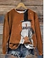 Dame Genser med genser Grafisk Dyr Katt Mote Fritid Langermet Rund hals Vanlige topper Gate Hverdag Avslappet Trykt mønster Rødbrun Svart Vin Rød Høst Vinter