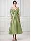 A-linje Te-lengde Cocktailkjoler Elegant Ermeløs Løse skuldre Formell Bryllup Sateng med Plissert 2025
