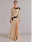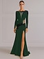 Linjeform Gulvlengde Ballkjoler Kveldskjoler Ballkjole Formell kjole Elegant Langermet V-hals Formell Bryllupsgjest Svart kjole Stretchstoff med Spalte 2025