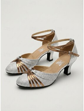 Sølvfargede ballroom-dansesko til dame – lukket tå standard &latinske dansehæler med kryssreim, profesjonell praksis &konkurranse