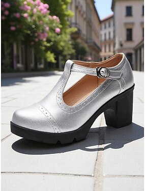 Damesandaler med sølvglans og stropper – komfortable platåhæler med blokkhæl for hverdagsbruk og sommerfester &trendy uformelle antrekk